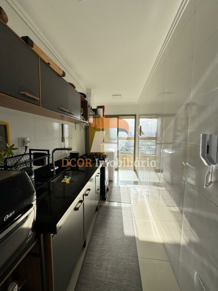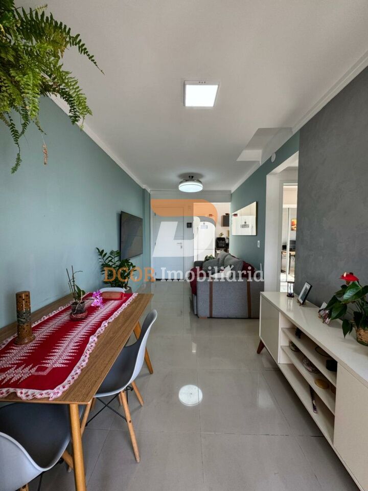Apartamento mobiliado com 62 m² de área útil, composto por dois dormitórios, duas salas, um banheiro e uma vaga de garagem. Possui área de serviço, cozinha planejada com armários, banheiro com box e armário, lavabo, sala de estar e sala de jantar, piso de porcelanato, varanda gourmet e varanda fechada com vidro. Vista exterior privilegiada e excelente iluminação natural.